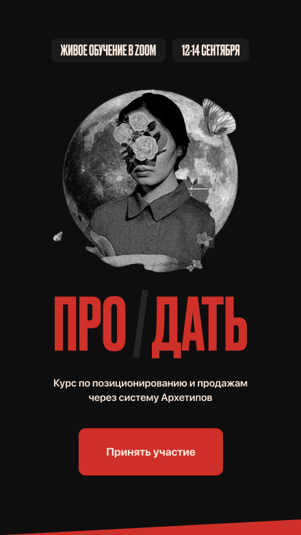 Поймете основные принципы продаж через свои архетипы. Узнаете, как транслировать свои архетипы и усилить продажи. Потестируете свое продающее сообшение на участниках курса.